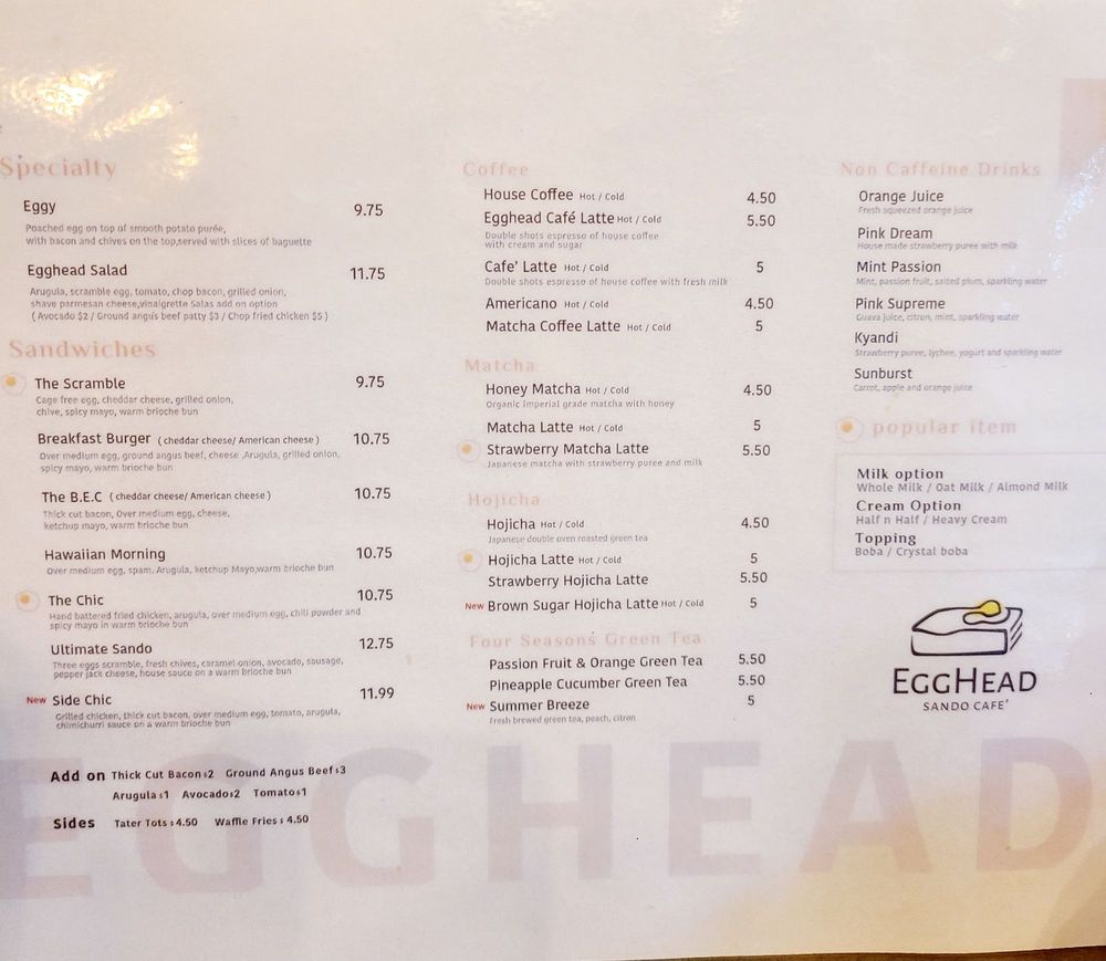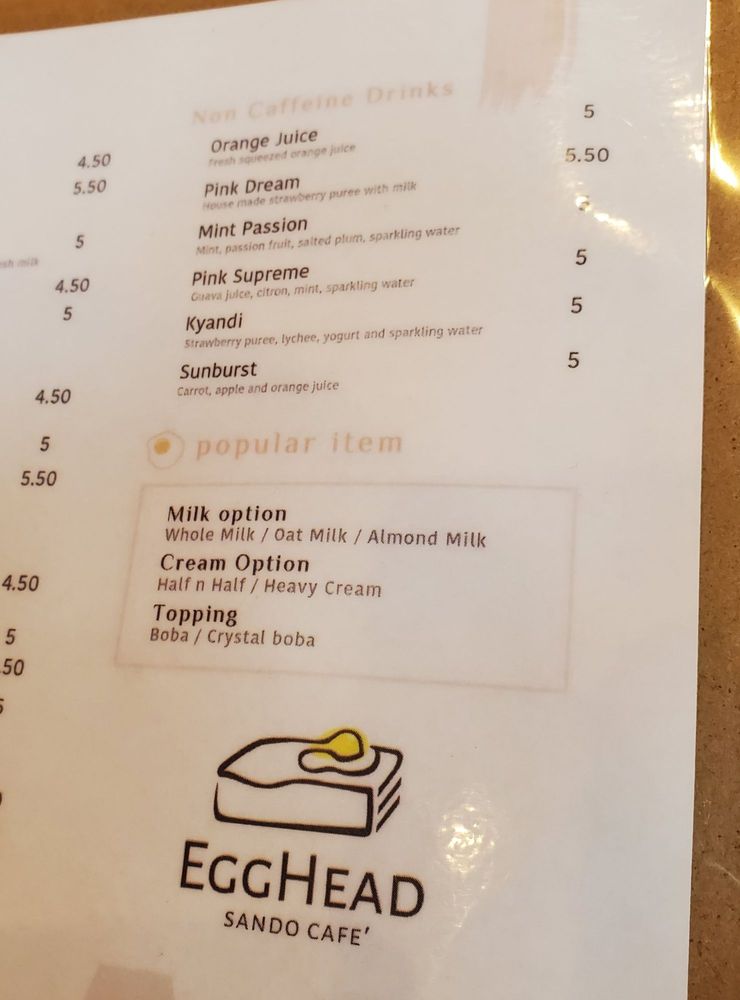 Egghead Sando Cafe Menu (Update 2025)